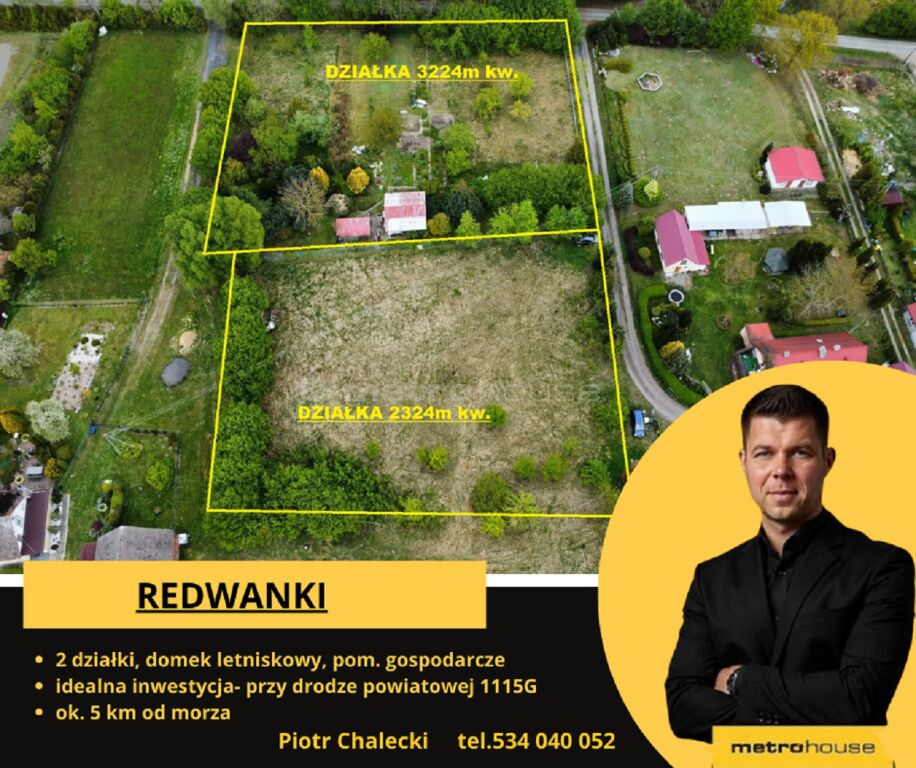 Na sprzedaż działka położona w miejscowości Redwanki w gminie Ustka, w odległości około 5 km od morza. Kompleks dwóch działek-łącznie Jedna o powierzchni 3224 m2 oraz działka mniejsza o powierzchni 2324 m2, sąsiadujące ze sobą, częściowo ogrodzone, zagospodarowane jako duży ogród z drzewami i krzewami ozdobnymi oraz owocowymi. Na działce jest sieć wodna oraz energetyczna, nie ma kanalizacji. Sąsiedztwo stanowią nieruchomości zabudowane domami jednorodzinnymi. Dojazd do działek drogą z płyt betonowych, około 200 metrów od wyremontowanej drogi asfaltowej Bydlino - Wytowno. Na jednej z działek znajdują się parterowy nieduży domek gospodarczy oraz pomieszczenie gospodarcze. Aby zabudować nieruchomość domem lub domami jednorodzinnymi lub podzielić nieruchomość na mniejsze działki zależy wystąpić o decyzję o warunkach zabudowy / decyzję podziałową i o warunki przyłączenia do sieci uzbrojenia. Ciche, spokojne miejsce do mieszkania ,idealne do odpoczynku i na rowerowe wypady.Zachęcam do kontaktu i umówienia się na prezentację tego wyjątkowej działki. To nie tylko miejsce do życia, ale także inwestycja, która z biegiem lat może tylko zyskać na wartości. Nie przegap okazji, aby stać się częścią tej cichej i spokojnej oazy w REDWANKACH koło Ustki.